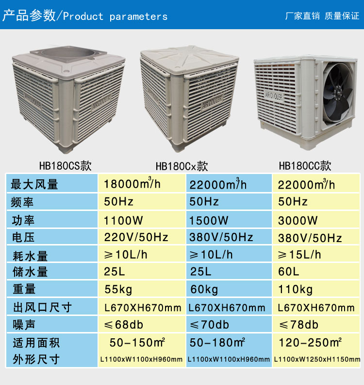 4、覆蓋面積大:每臺(tái)機(jī)冷風(fēng)覆蓋面積達(dá)60-150m2,每小時(shí)送風(fēng)量達(dá)8000-18000m3,送風(fēng)量距離遠(yuǎn)。